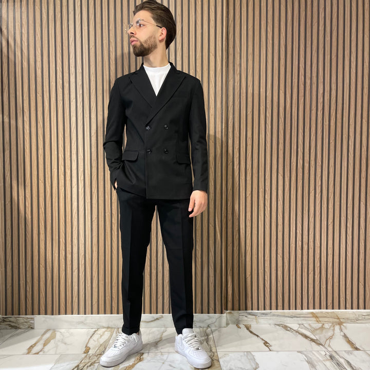 Nuova collezione abito doppiopetto prodotto 100% Made in italy, pantalone modello Capri con risvoltino cucito giacca doppiopetto con tasche sul davanti calzata regular, il modello in foto indossa taglia 46 e veste dalla 44 fino alla 56.
