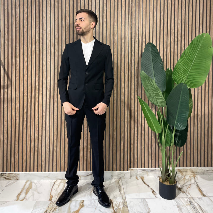 Nuova collezione abito monopetto composto da giacca con chiusura a bottoni, taschino sul davanti e taschino all’interno della giacca. Chiusura a bottoni anche sui polsi. Pantalone con chiusura a bottoni e zip, tasche laterali, passanti per la cintura. Fit slim. Veste dalla taglia 44 alla 54.