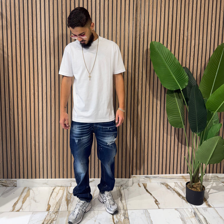 Jeans baggy con piccola rottura con toppa all’interno