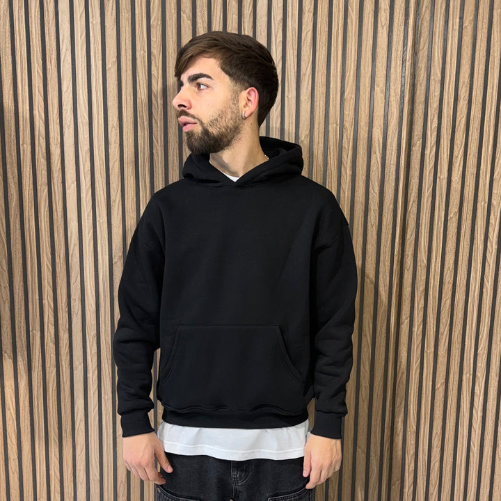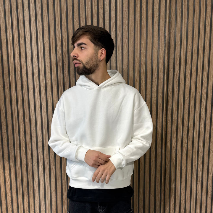 Nuova felpa con cappuccio con tasche entrambi i lati, tessuto felpa, vestibilità crop, disponibile in 5 colorazioni, taglia dalla S alla XXL. Il modello in foto indossa la taglia S.