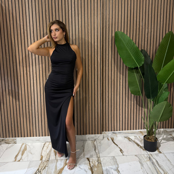 New Dress con spacco laterale disponibile in due colori,taglia unica a costine Halterneck .