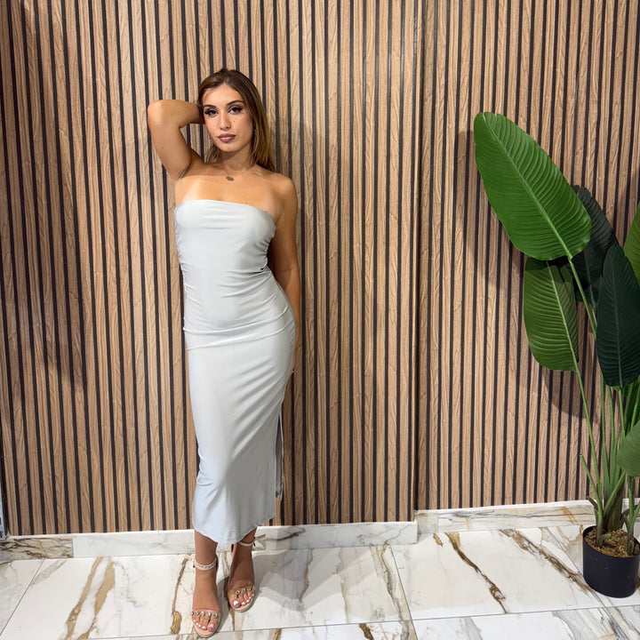 New Dress taglia unica con spacco laterale disponibile in quattro colori ,tessuto elastico.