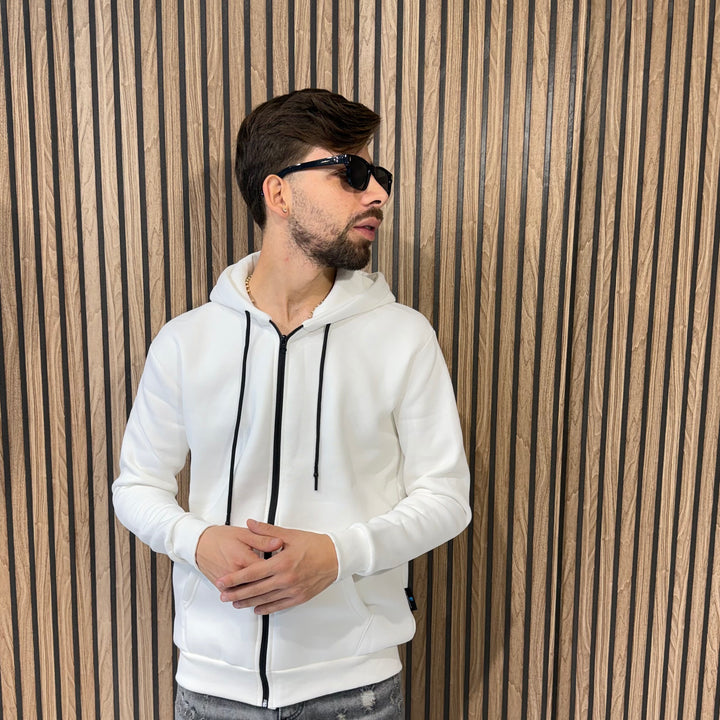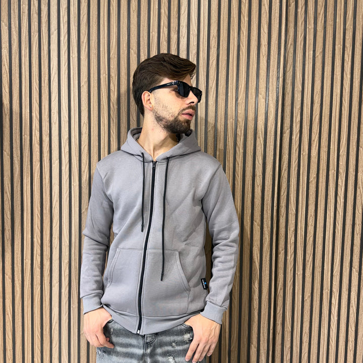 Nuova collezione felpa con zip e con cappuccio, tessuto felpato, vestibilià regular fit, disponibile in due colorazioni, veste dalla taglia S alla XXL.