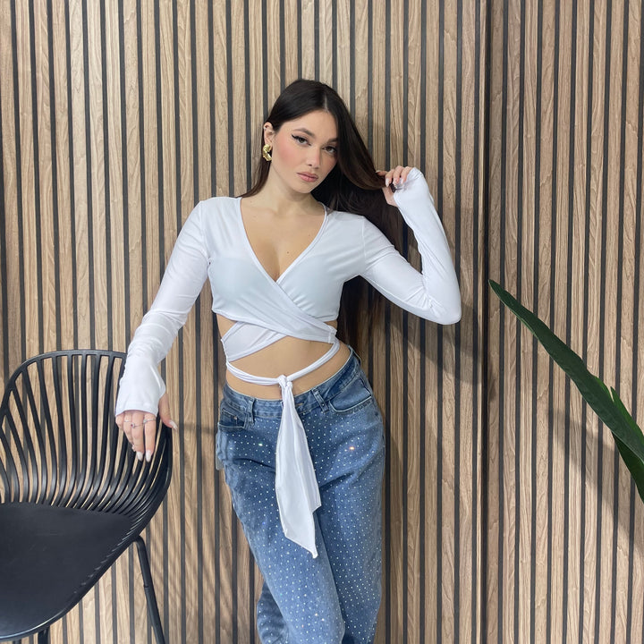 Incrociatina in lycra a maniche lunghe e maniche a guanto. Taglia unica. Disponibile in diverse colorazioni.