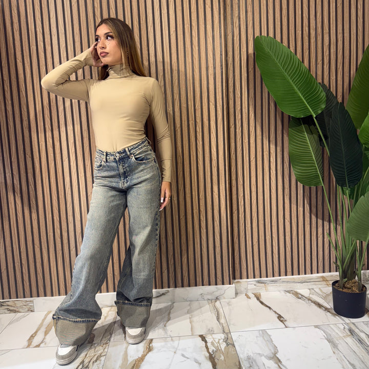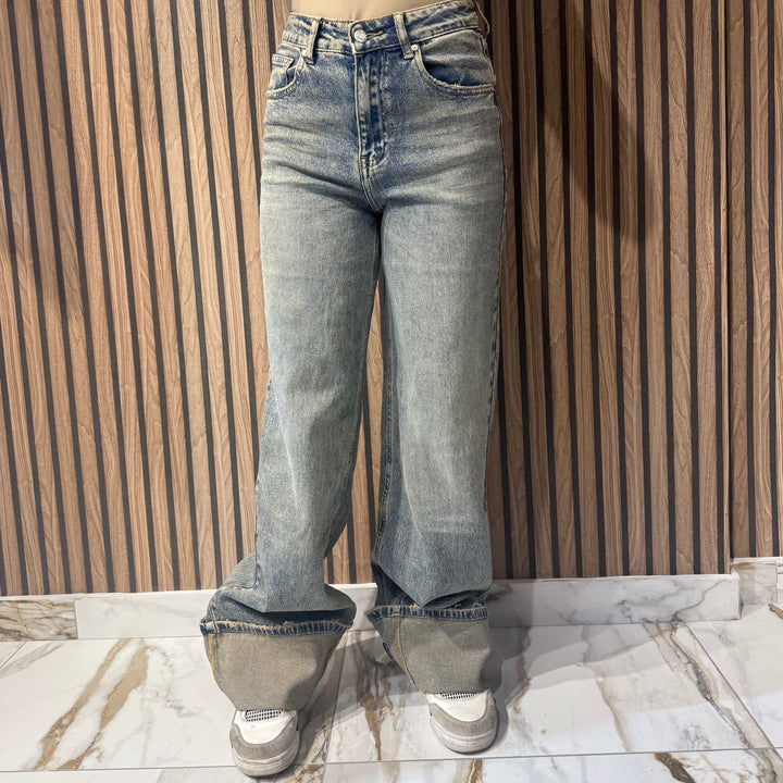 New jeans con piegoni sabbiato vestibilità wide leg