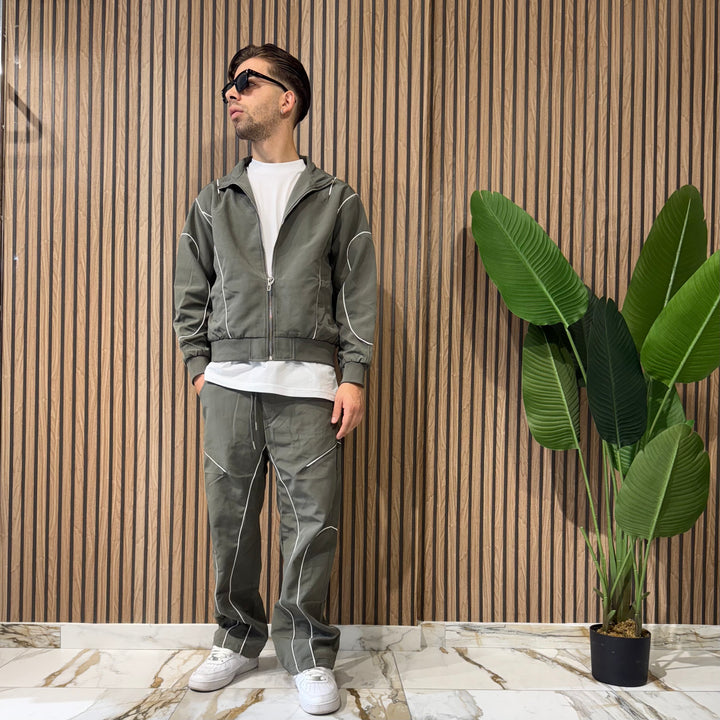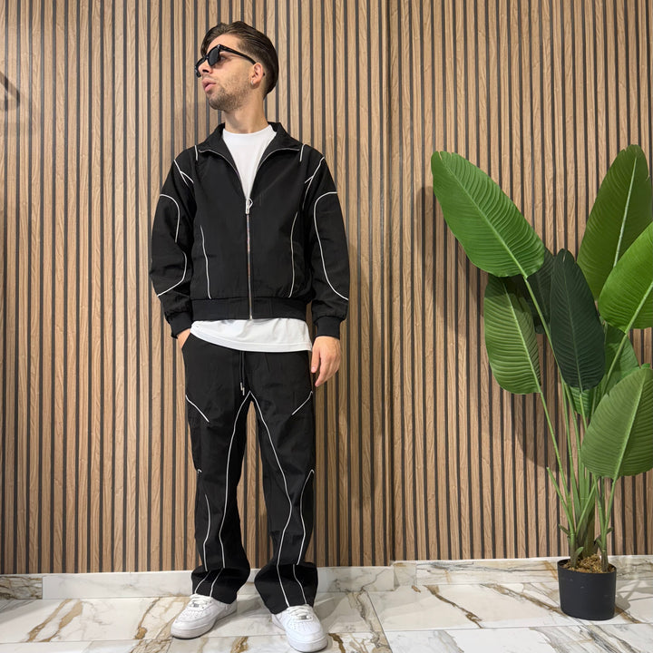 Coordinato tracksuite disponibile in due colori vestibilità over , giacca con chiusura a zip il modello in foto indossa taglia M.