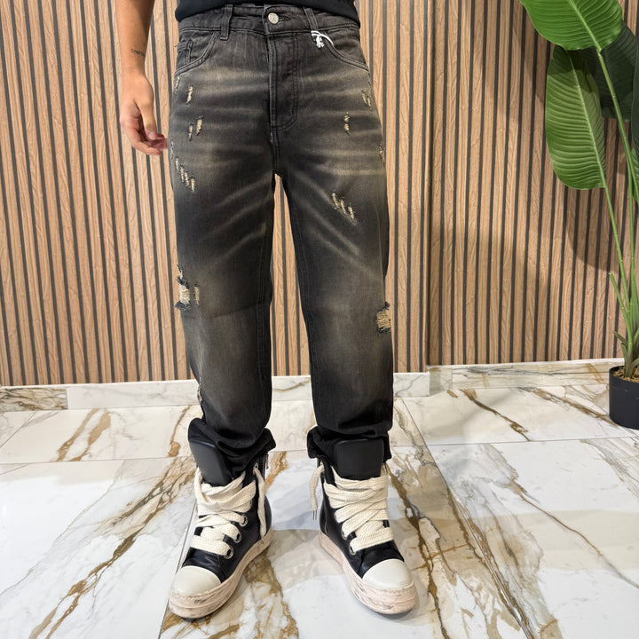 Jeans Baggy sabbiato con chiusura a bottoni e piccole rotture vestibilità baggy veste dalla taglia 42 alla 52